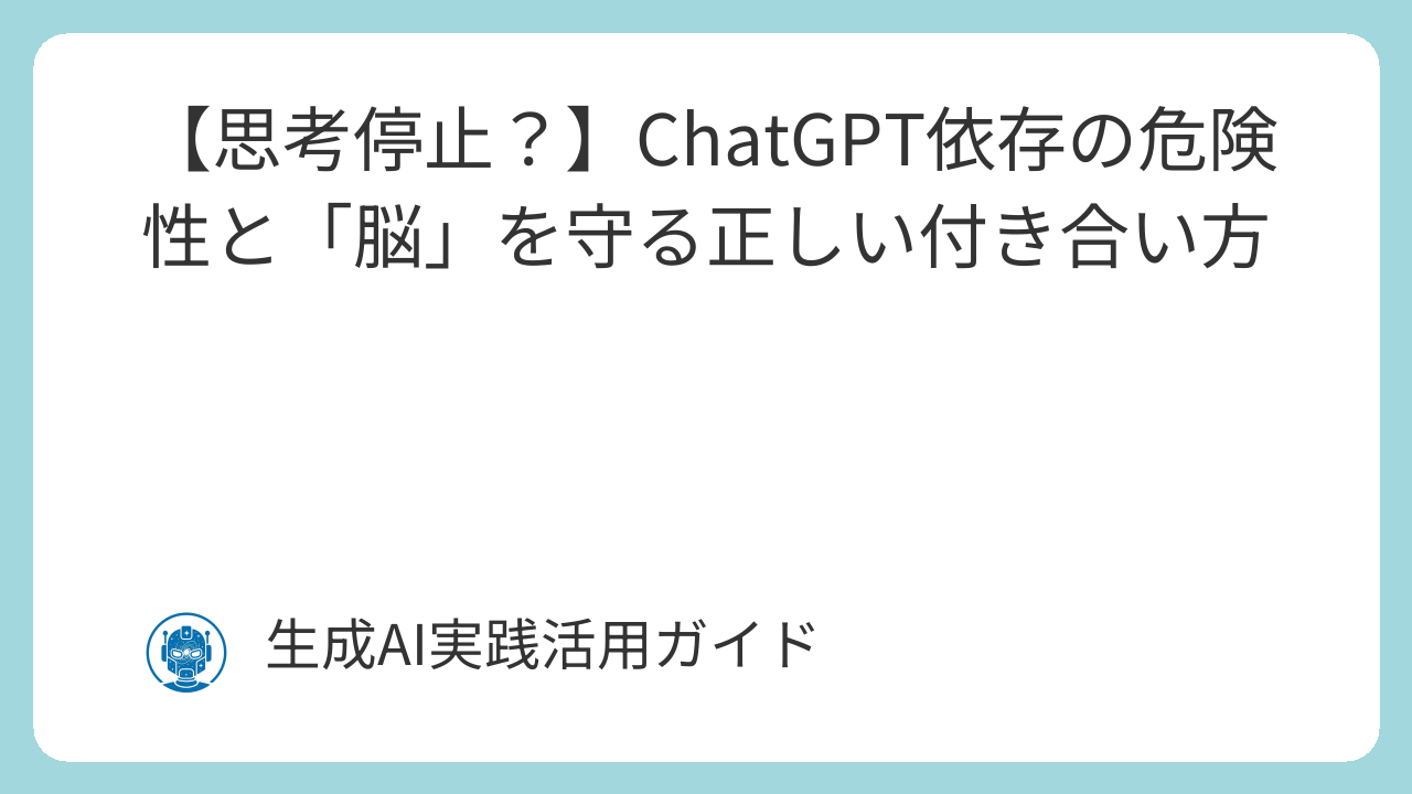 【思考停止?】ChatGPT依存の危険性と「脳」を守る正しい付き合い方