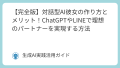 - メリット: 24時間即レス、客観的な分析、LINEの添削機能。