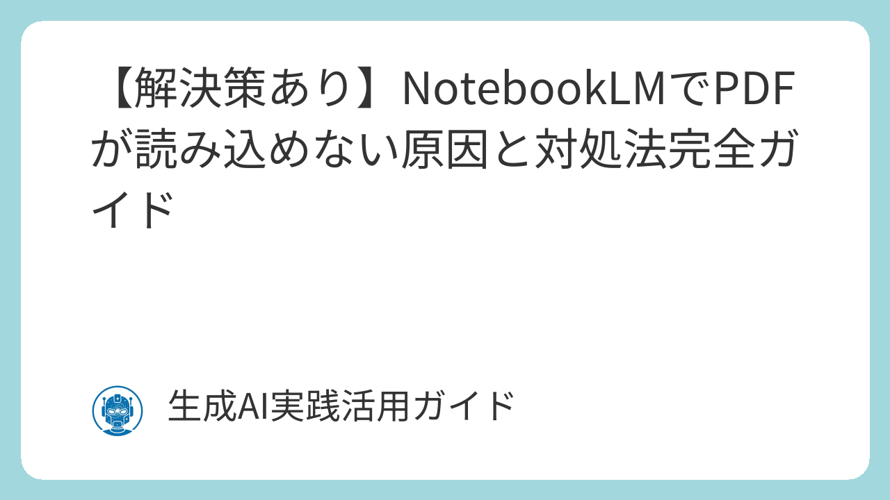 しかし、その基盤となる「ソース(資料)」の読み込み段階で、PDFファイルがアップロードできない、あるいは中身が認識されないというトラブルが頻発しています。