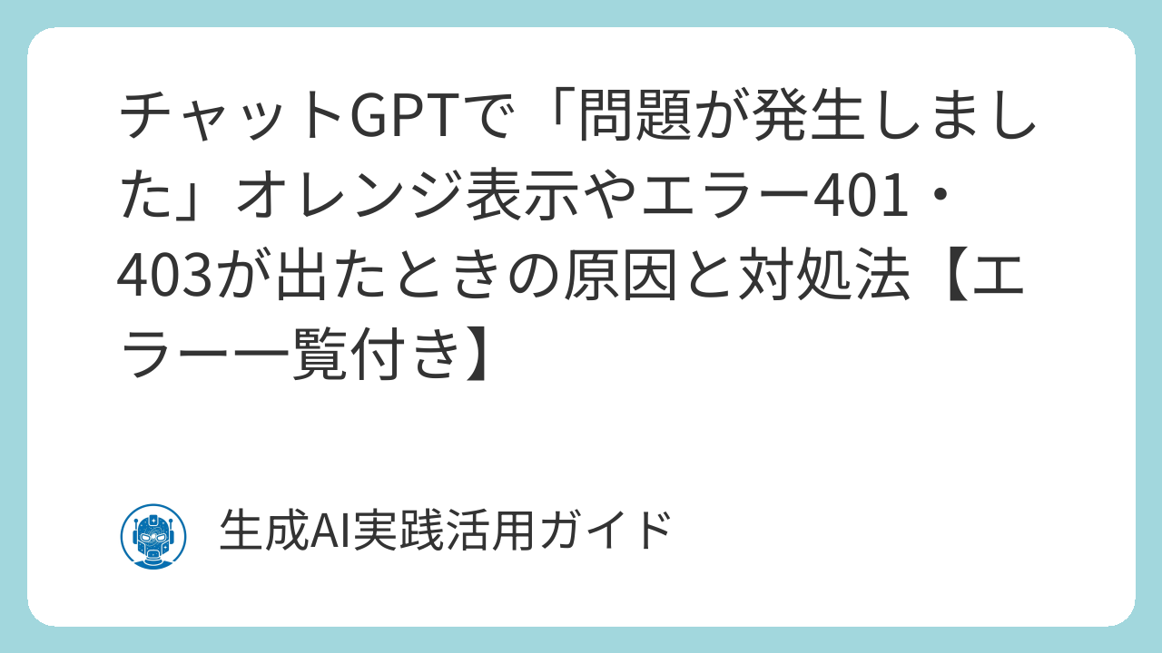 チャットGPTで「問題が発生しました」オレンジ表示やエラー401・403が出たときの原因と対処法【エラー一覧付き】