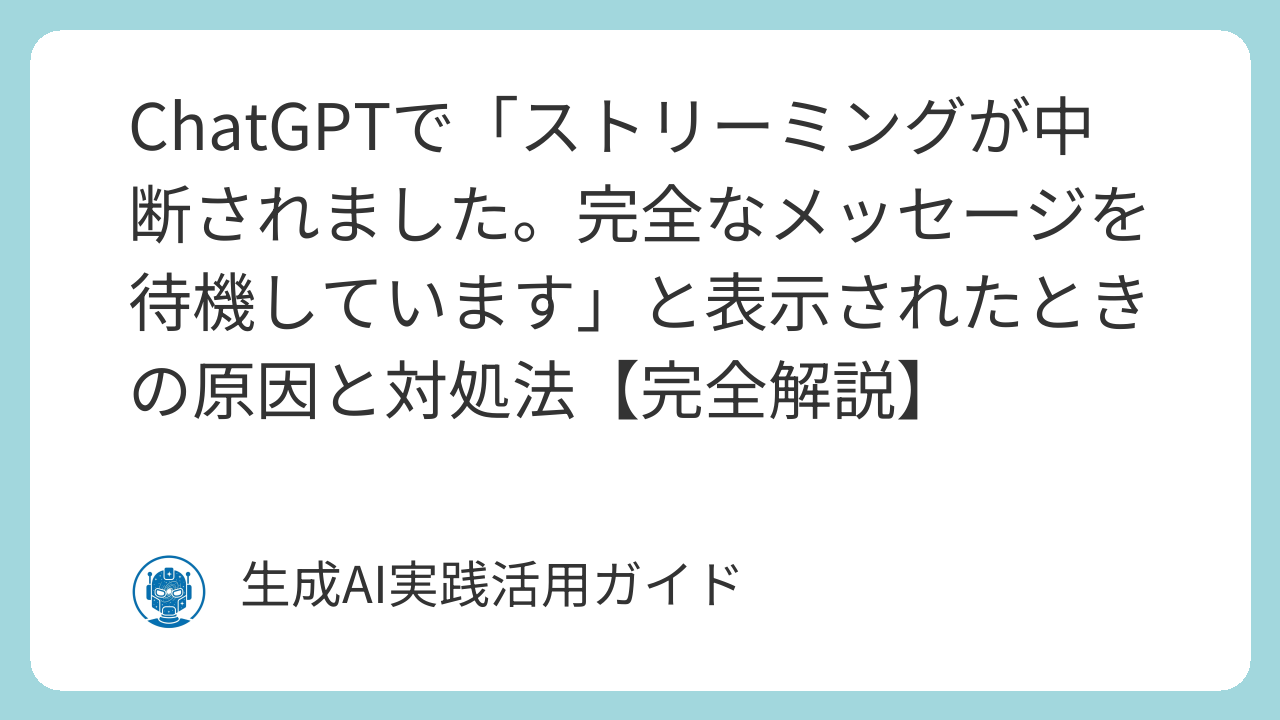 ChatGPTで「ストリーミングが中断されました。完全なメッセージを待機しています」と表示されたときの原因と対処法【完全解説】